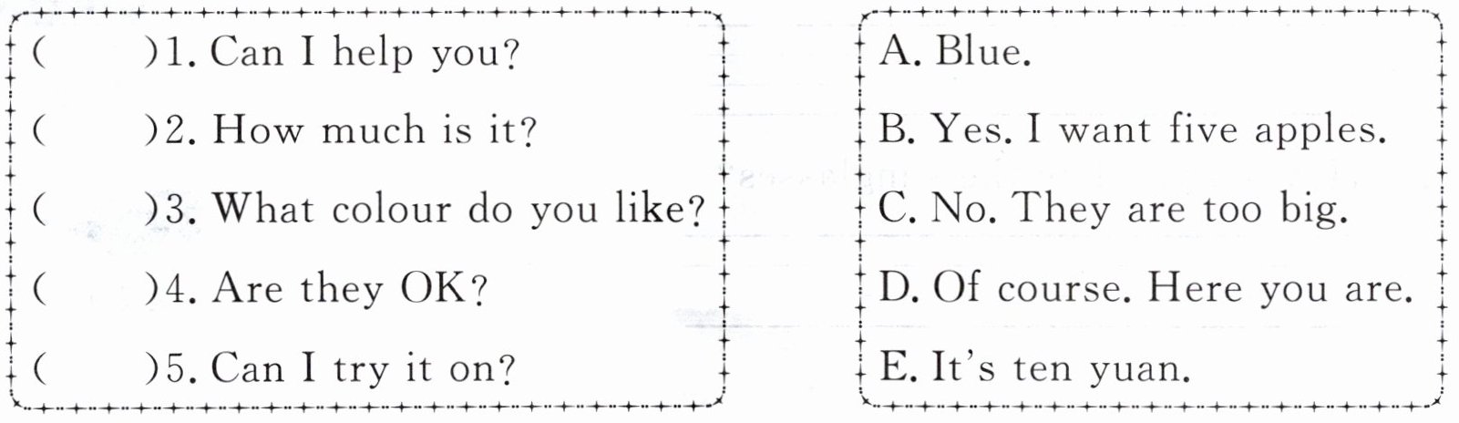 1. B 2. E 3. A 4. C 5. D