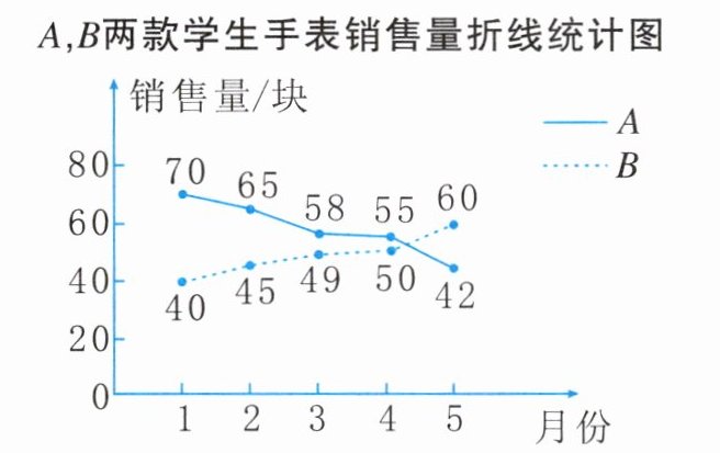 (2)参考这五个月的销售情况,请对这两款学生手表未来的进货、销售方面提出你的建议.