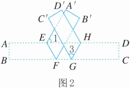 (2)如图2,再将纸片沿GH折叠,使得CD落在$C'D'$的位置.