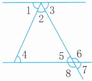14. 如图,用数字标出的八个角中,同位角、内错角、同旁内角分别有哪些?请把它们一一写出来。
