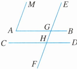 12. 如图,$∠BAM = 75^{\circ}$,$∠BGE = 75^{\circ}$,$∠CHG = 105^{\circ}$,则可推出$AM// EF$,$AB// CD$.完成下面的推理过程(填空).