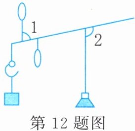 12. 一杆古秤在称物体时的状态如图所示,已知 $ \angle 2 = 100^{\circ} $,则 $ \angle 1 $ 的度数是 ______.