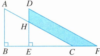 15. 如图,将直角三角形ABC沿BC方向平移到三角形DEF的位置,$AB= 10$,$DH= 4$,平移距离为6,求阴影部分的面积.