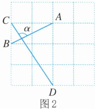(2)在图2中,线段AB与CD相交,产生$∠α$,请画一个$\triangle ABE$,使得$\triangle ABE中的一个角等于∠α$.
