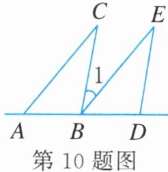 10. 如图,将三角形ABC沿AB方向平移到三角形BDE的位置.若$∠CAB= 50^{\circ}$,$∠ABC= 100^{\circ}$,则$∠1= $______.