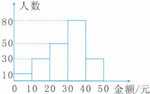 6. 某校学生自主建立了一个学习用品义卖平台,已知九年级200名学生义卖所得金额的频数直方图如图所示,那么该组数据的组距是______,20~30元这个小组的频率是______.