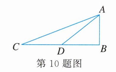 10. 如图所示,在△ABC中,AD是中线,已知△ADC的周长比△ABD的周长多5 cm,AB = 3 cm,则AC = ______.