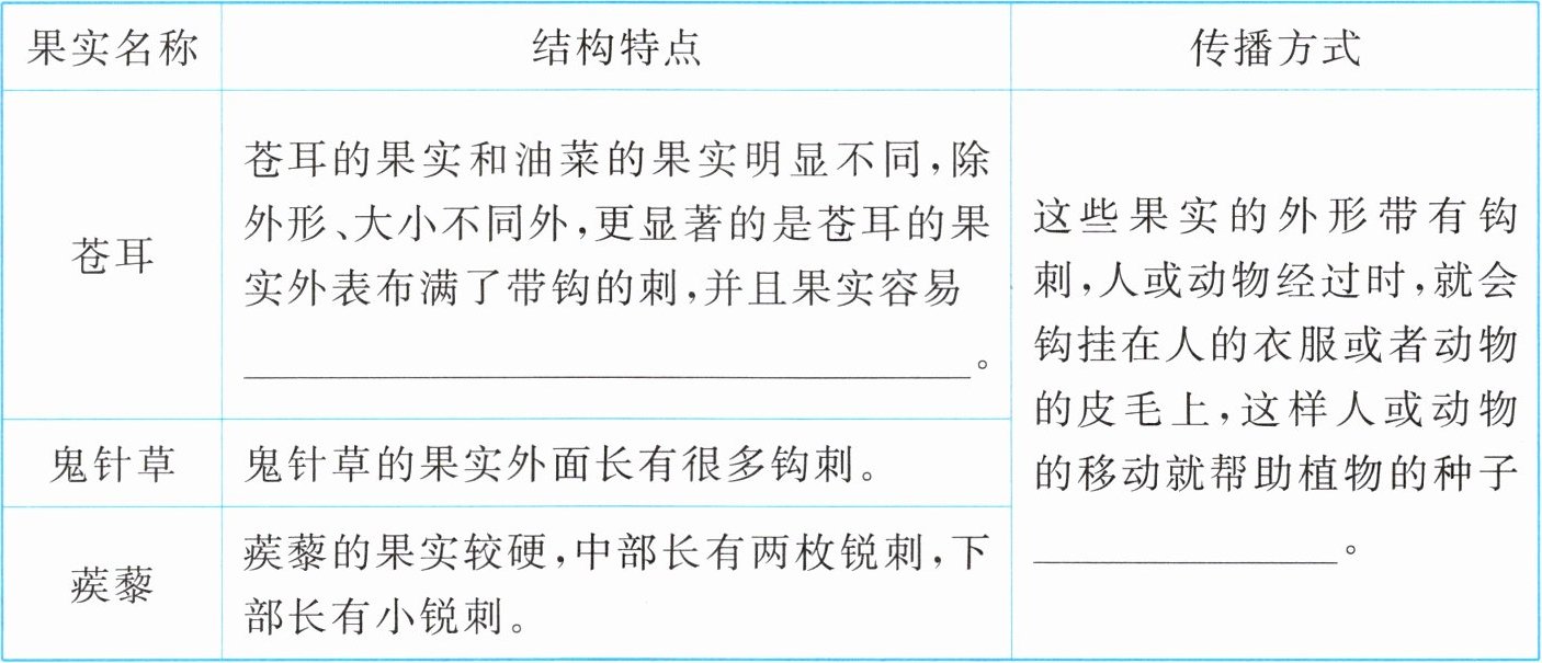 2. (1)观察目的:通过观察苍耳等植物果实的形态、______,猜测其传播种子的方式。