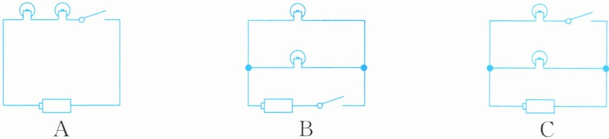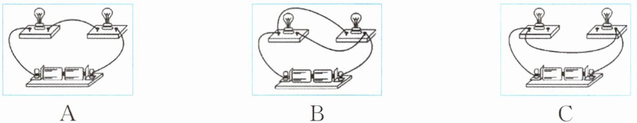 3. 下面的连接方法中,不能使两个小灯泡发光的是( )。