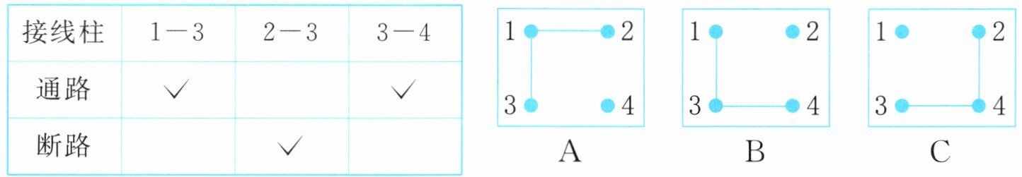 9. 根据检测记录,推测接线盒里的连接可能是( )。