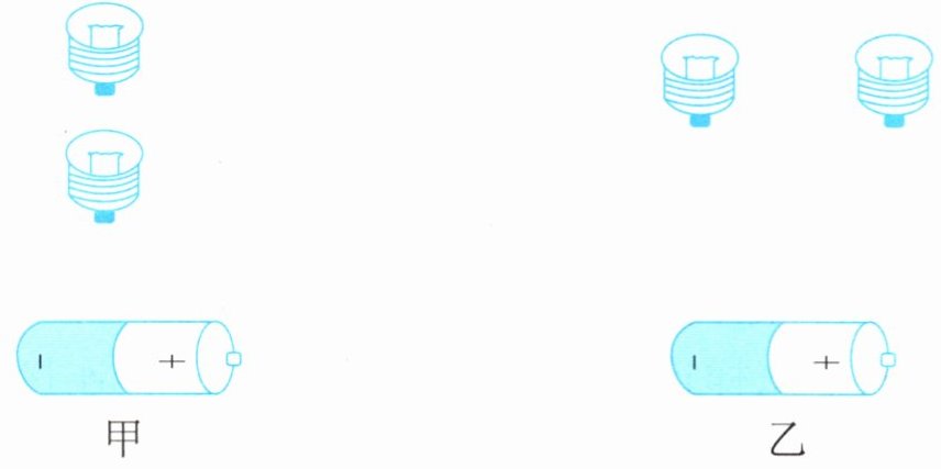两个外观都一样的不透明盒子,盒子里有干电池和导线,盒子外面有两个亮着的小灯泡。将甲盒子上的一个小灯泡拧下后,另一个小灯泡仍然亮着;当将乙盒子上的一个小灯泡拧下后,另一个小灯泡也灭了。根据以上现象,请分别画出甲、乙两个盒子里面的电路连接图。
