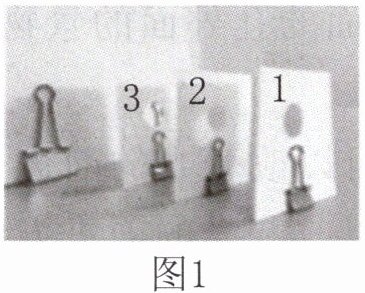 (2)如上图所示,在图1中,手电筒的光从第1张卡纸的小孔中射入,最终会在______上形成光斑。在图2中,手电筒的光从第一张卡纸的小孔中射入,最终______在纸屏上形成光斑。