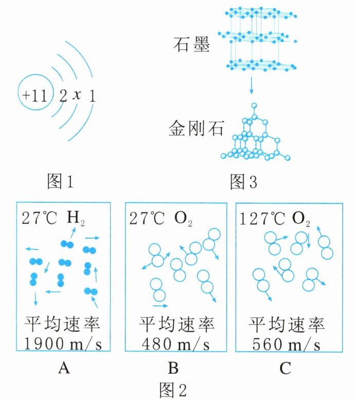 1. 图 1 是钠原子结构示意图。x 的数值为 ;“11”指的是。