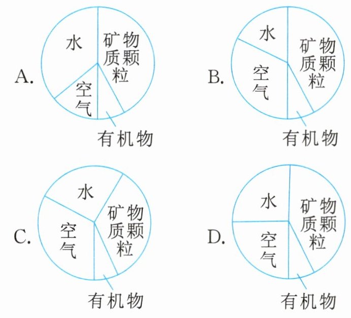 13. 下列土壤模型中,最适合植物生长的是 ( )