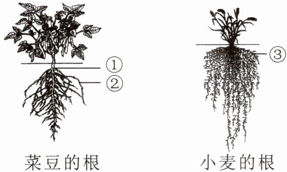 1. 根据如图所示菜豆和小麦植株的根系组成示意图,回答下列问题。