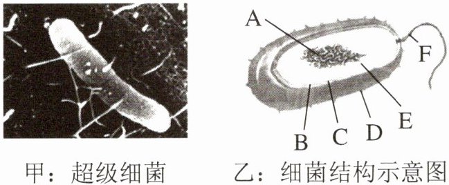 (2) 超级细菌的遗传物质存在于图乙细菌结构的________中(填字母)。