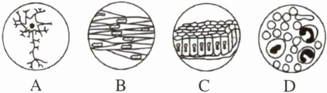 2. 如图是在显微镜下观察到的人体四大组织切片,据图回答下列问题。
