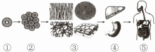10. 如图①~⑤表示的是人体的不同结构层次,下列叙述不正确的是( )