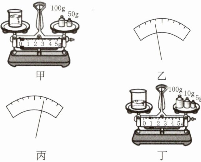 (4)再测剩余食用油和玻璃杯的质量时,发现加入一定量的砝码后,指针指在如图乙所示位置,再加入一个最小的砝码,又发现指针指在如图丙所示位置,则他应进行的操作是______。天平再次恢复平衡时如图丁所示,此时,玻璃杯和食用油的质量是______克。