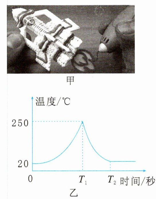 7. 如图甲是一款3D打印笔,笔中装有塑料条,启动加热开关,塑料受热会逐渐变软变稀。挤出的液态塑料冷却后形成固定的形状。整个过程中塑料的温度变化如图乙,据此可知( )