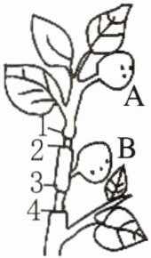 7. 如图是果树的一段枝条,长有大小相同的两个果实,现对枝条两个部位的树皮进行环剥,下列有关说法正确的是( )