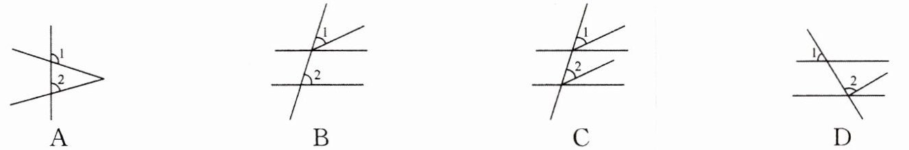 1. 下列图形中,$\angle 1$与$\angle 2$不是同位角的是(