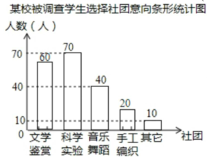 (3)若该校共有1200名学生,试估计全校选择“科学实验”社团的人数。