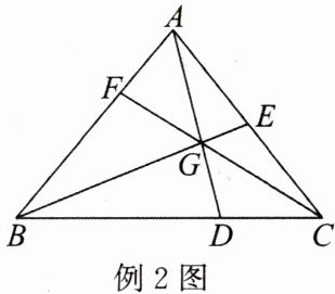 例2 已知:如图,在△ABC中,点D,E,F分别在三边上,E是AC的中点,AD,BE,CF交于一点G,BD=2DC,$S_{△BGD}=8$,$S_{△AGE}=3$,则△ABC的面积是(