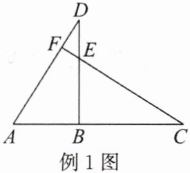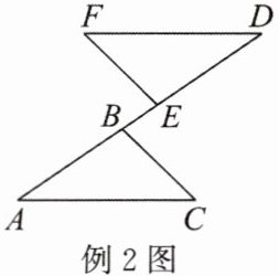 例2 如图,$\triangle ABC$与$\triangle DEF$全等,$\angle F = \angle C$,$\angle D = \angle A$,$AD = 12\mathrm{cm}$,$BE = 2\mathrm{cm}$,求线段$AB$的长。