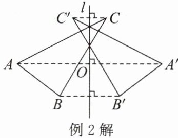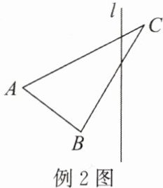 例2 如图1,已知$\triangle ABC$和直线$l$,以直线$l$为对称轴,作与$\triangle ABC$成轴对称的图形。