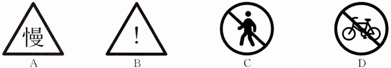 例1 下列“慢行通过”“注意危险”“禁止行人通行”“禁止非机动车通行”四个交通标志图(黑白阴影图片)中,为轴对称图形的是 (