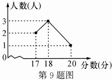 9. 在体育中考中,某校6名学生的体育成绩统计如图,则这组数据的众数,中位数,方差依次是(