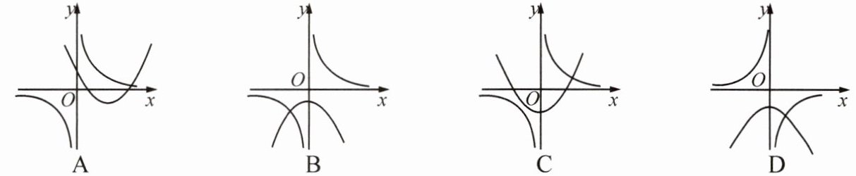 8. 函数$y=ax^{2}+a$与$y=\frac {a}{x}(a≠0)$在同一坐标系中的图象可能是(