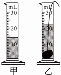 例2 对于不规则物体的体积测量我们会选择排水法来测量,测量过程中:用量筒测量液体体积时,量筒必须放在水平台面上,读数时视线要与______相平。某同学测一合金块的体积如图乙所示,量筒的量程是______。测量结果合金块的体积为$______cm^3。$若某同学在测合金块体积时,把甲、乙两图次序颠倒了,则测得小石块的体积将比真实值______(填“偏大”“偏小”或“相等”)。