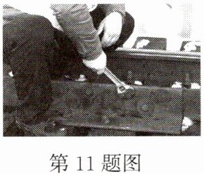 11. 如图所示是工人戴着手套用扳手拧螺栓的情景,下列说法中不正确的是 ()