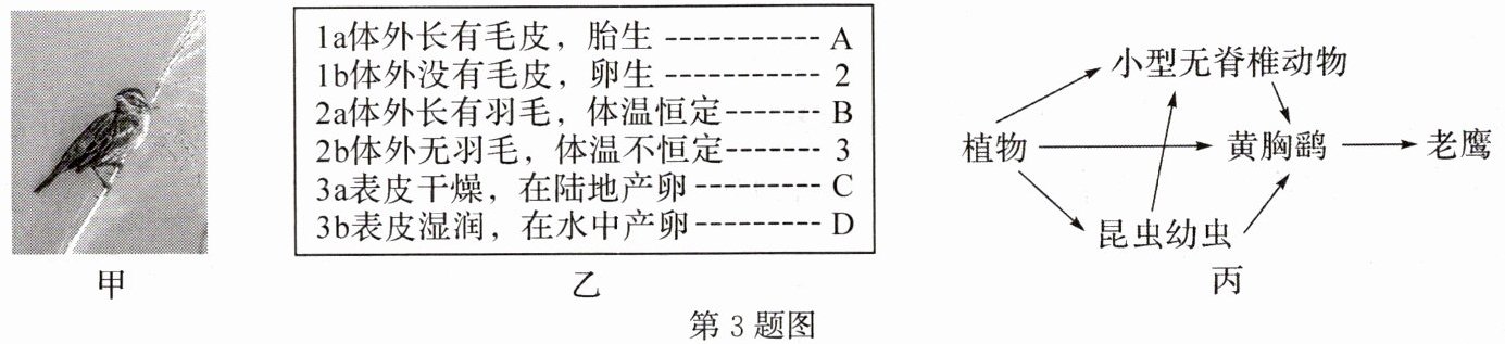 (2)黄胸鹀在图乙检索表中的位置是______(填字母)。