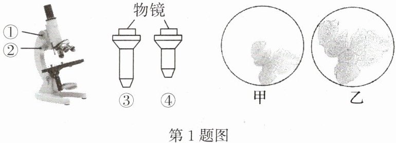 A. 对光后,眼睛注视目镜,先调节结构①使镜筒下降