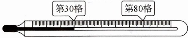 变式3 如图是一支刻有100个均匀小格的温度计,若将此温度计插入正在熔化的冰水混合物中,液面下降到第30格,若将此温度计插入1个标准大气压下的沸水中,液面升到第80格,则此温度计第10格时的温度是 ()