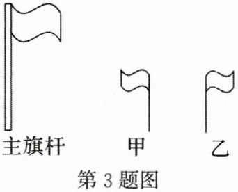 3. 学校运动会开幕式上,小科观察到操场主旗杆上的旗帜向东飘扬,跑道上甲、乙运动员手上小红旗飘动的情形如图所示。