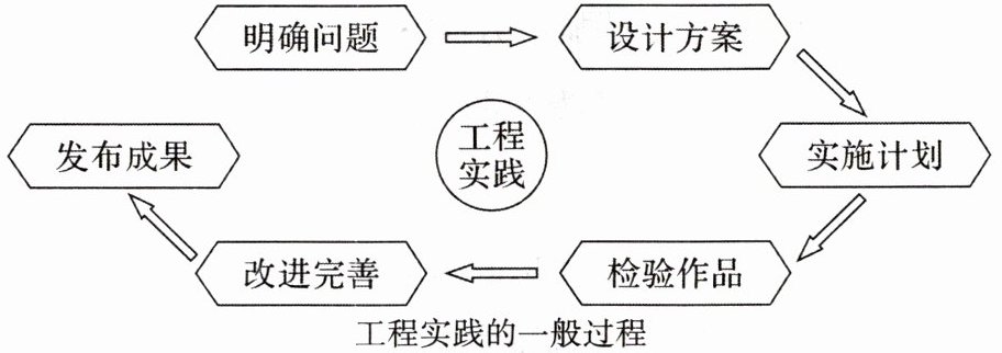 1. 为适应自然、改善生存环境,满足人类需求 技术2. 工程 3. 技术 工程 4. 相互依赖,相互促进 5. 科学发现 技术 发明 工程 建造 6. 工程 技术 技术创新 工程实践
