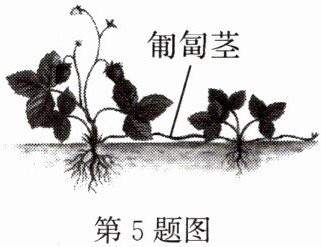 5. 如图所示,草莓的走茎是指从主植株上延伸出来的匍匐茎可以用来产生新的草莓苗。利用草莓的走茎进行繁殖的方式属于 ()