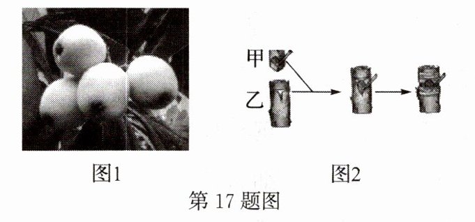 (2)枇杷可以采用嫁接的方式进行繁殖,该繁殖方式的优点是______(写一点)。如图2为嫁接过程示意图。甲插进乙的楔形切口后,要用麻绳或塑料条捆扎好,目的是使它们的______紧贴,这是成活的关键。