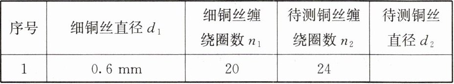 ②数出$d_1= 0.6mm$的细铜丝缠绕的圈数为$n_1,$另一种细铜丝缠绕的圈数为$n_2。$