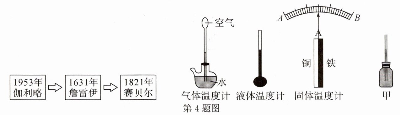 4.以下为某校学生进行“温度计发展史”的项目化学习的部分片段,通过查阅资料整理了温度计发展史。请回答下列问题: