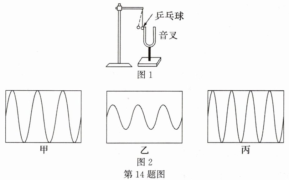 14. 如图所示是探究声现象时常用的装置。请回答: