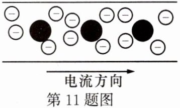 11. 如图为通电电路中一段导线内的电荷分布示意图。●表示带正电的原子核,○表示带负电的自由电子。关于导线中电荷的定向移动方向,正确的是 ( )