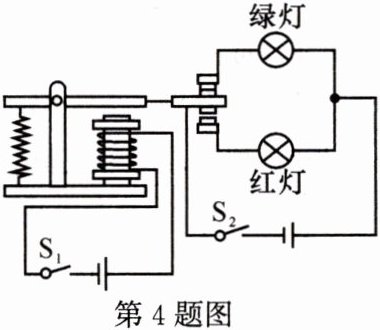 A.当$S_{1}断开S_{2}$闭合时,红灯亮