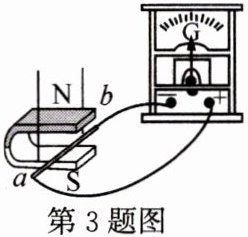 3. 在如图所示的实验装置中,用棉线将铜棒ab悬挂于磁铁N、S极之间,铜棒的两端通过导线连接到电流表上。下列说法正确的是 ( )