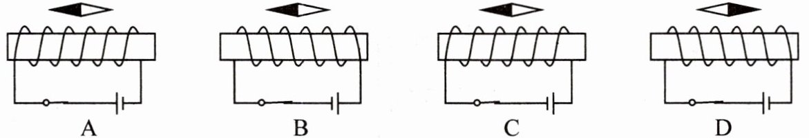 2. 下列四个图中,小磁针北极(黑色端)所指方向正确的是 ( )