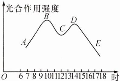 变式5 如图是夏季晴朗的白天,某种绿色植物叶片光合作用强度的曲线图。分析曲线并回答: